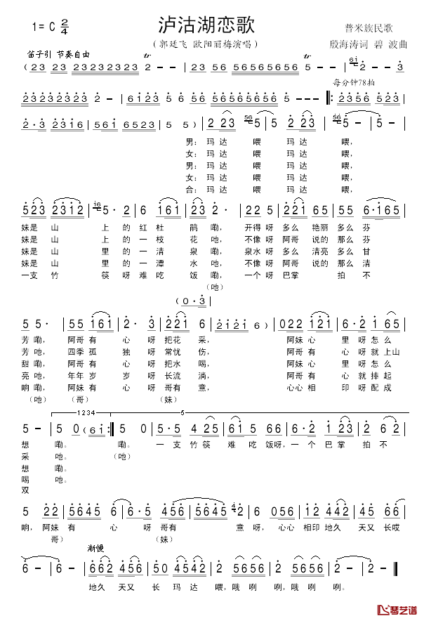 泸沽湖恋歌简谱_欧阳丽梅/郭廷飞演唱