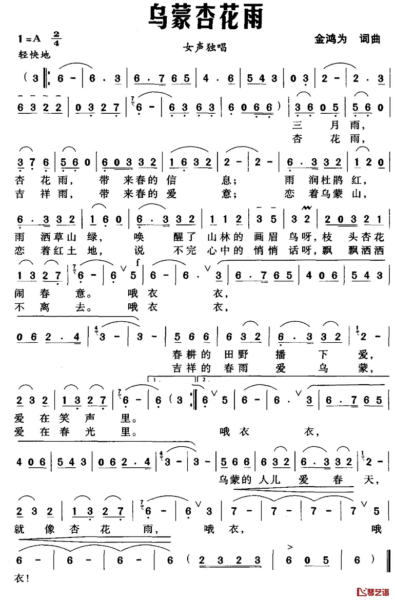 乌蒙杏花雨简谱_金鸿为词/金鸿为曲